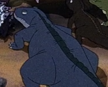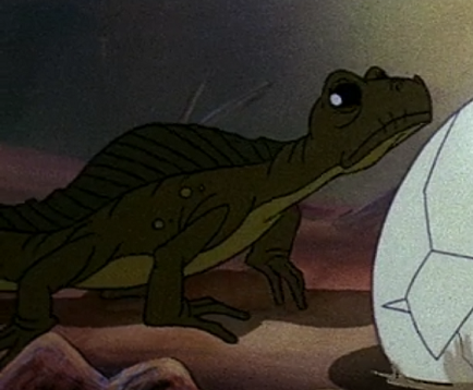 Lizard "E" A scarily large reptile visible in The Land Before Time at 7:45. |