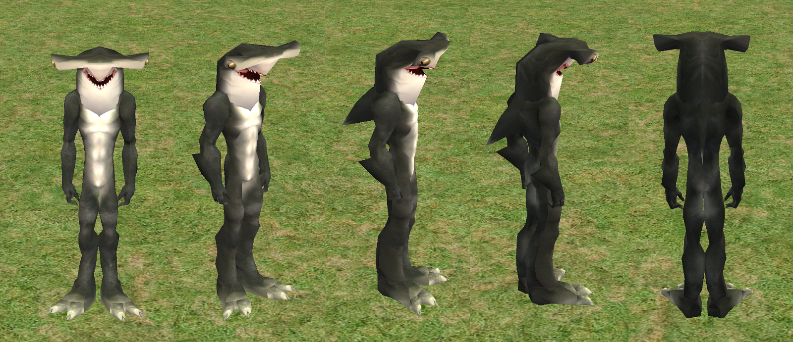 "Marky Sharky" conversion by ronyu02 but has been edited to change the pose and fix the bone assignments so that the neck won't look funny when the head is tilted very far up or down. The body is based off of Nova L's